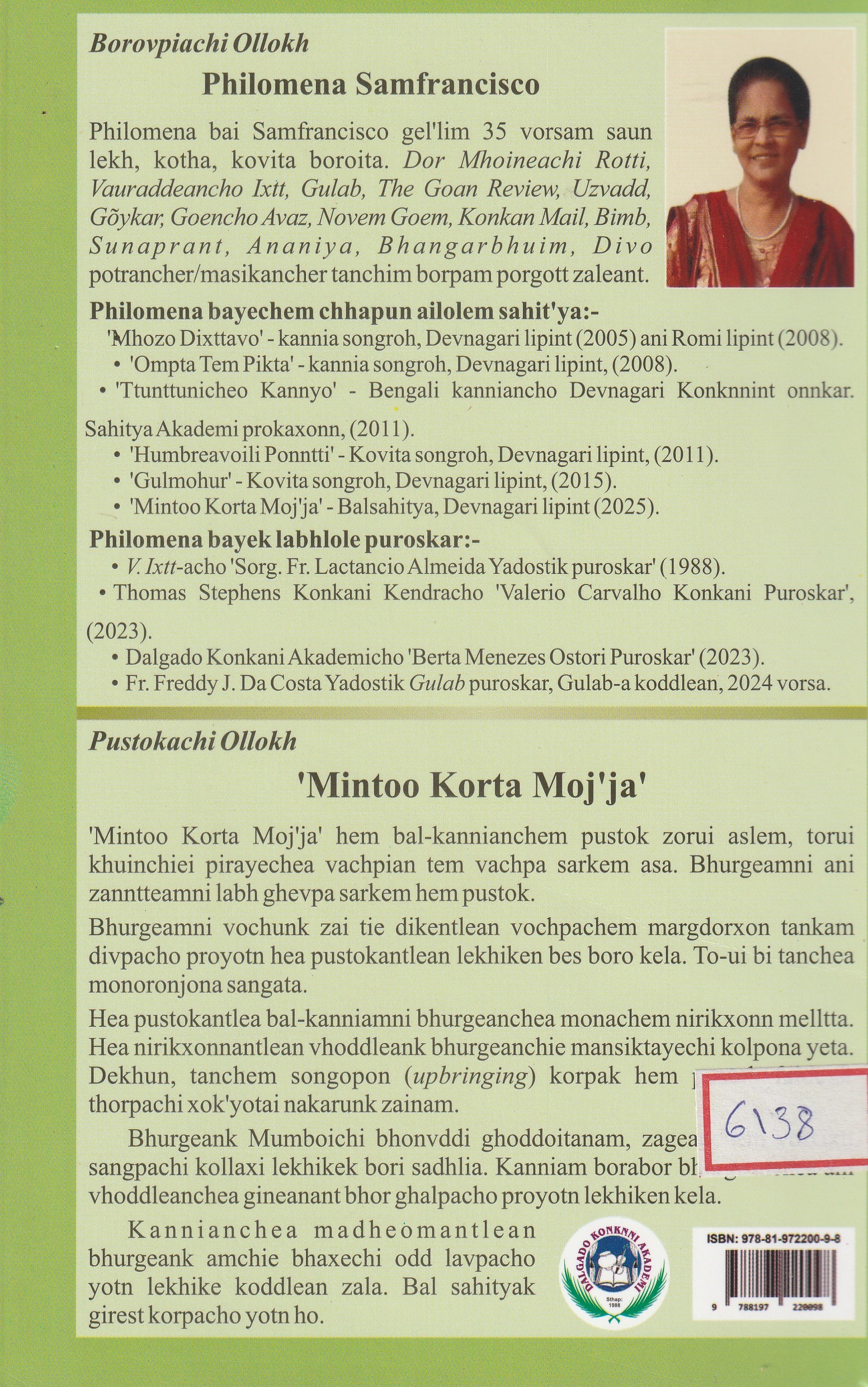 Author: Philomena Samfrancisco Publisher: Dalgado Konkani Academy Pages: 138 ISBN: 978-81-972200-9-8 Book Cover: Softcover₹180
