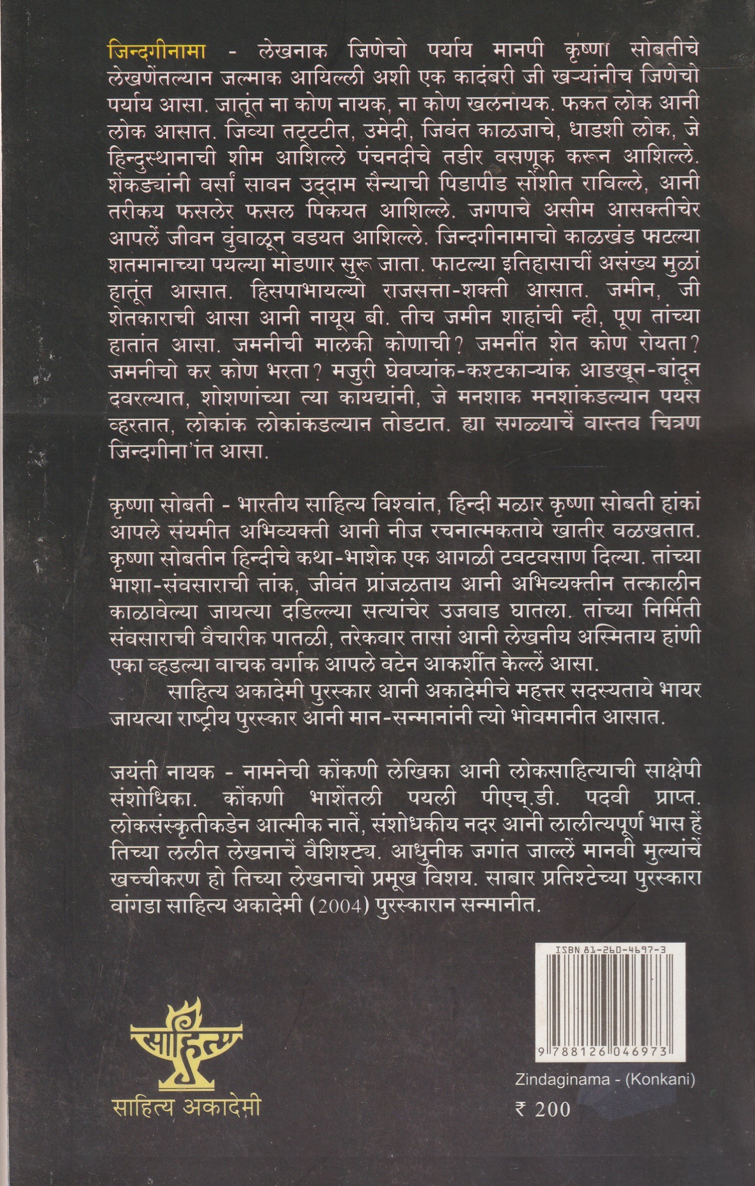Author: Krishna Sobatiche Publisher: Sahitya Akademi Pages: 442 ISBN: 81-260-4697-3 Book Cover: Softcover₹200